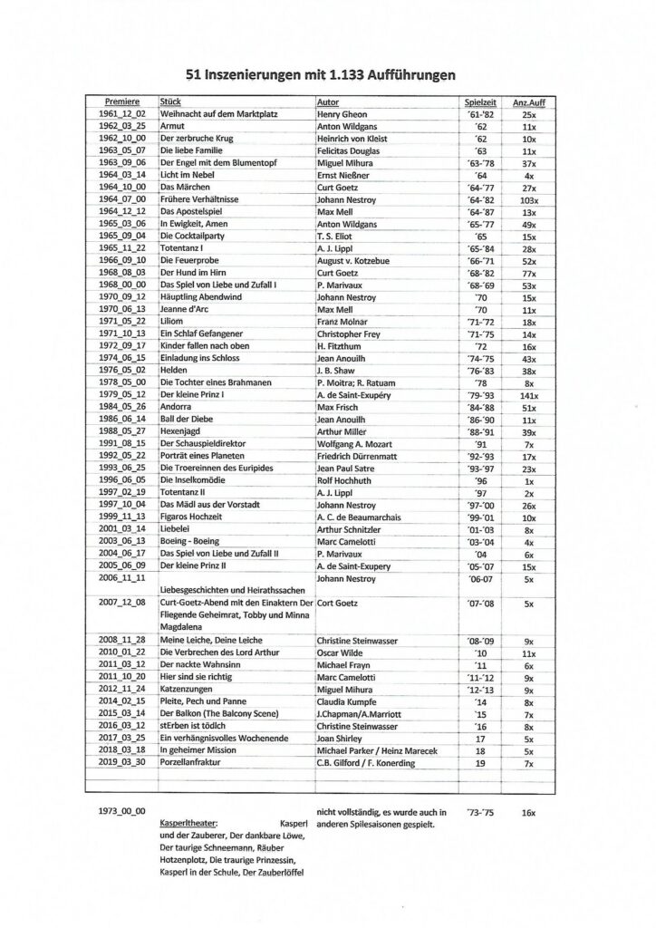 Um Ihnen eine Übersicht all unserer Stücke zu bieten haben wir eine Tabelle aufgearbeitet: